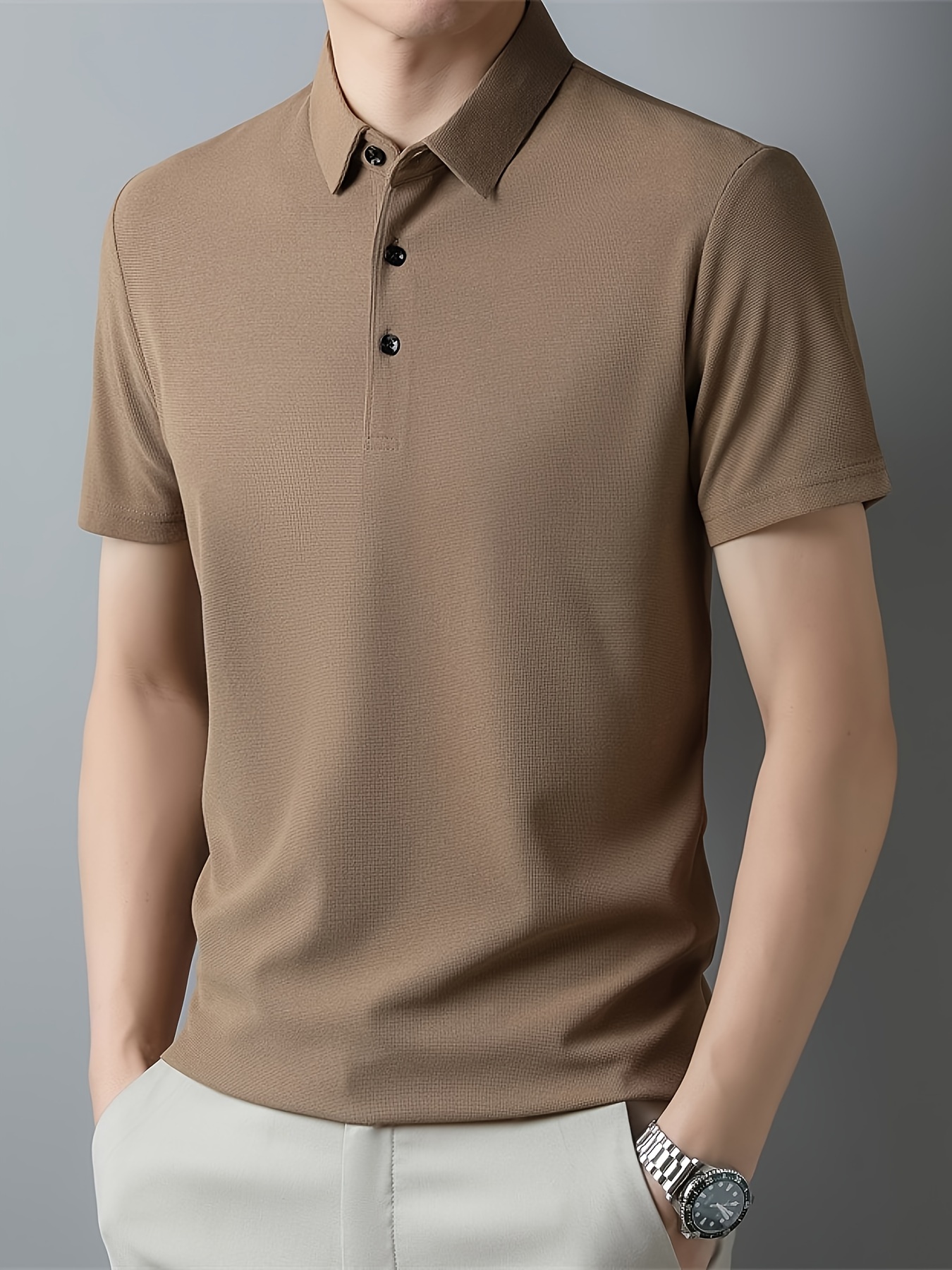 Men’s Solid Short Sleeve And Lapel Collar Henley Shirt, Casual And Comfy Sports Tops For Summer Golf Wear And Outdoors Activities