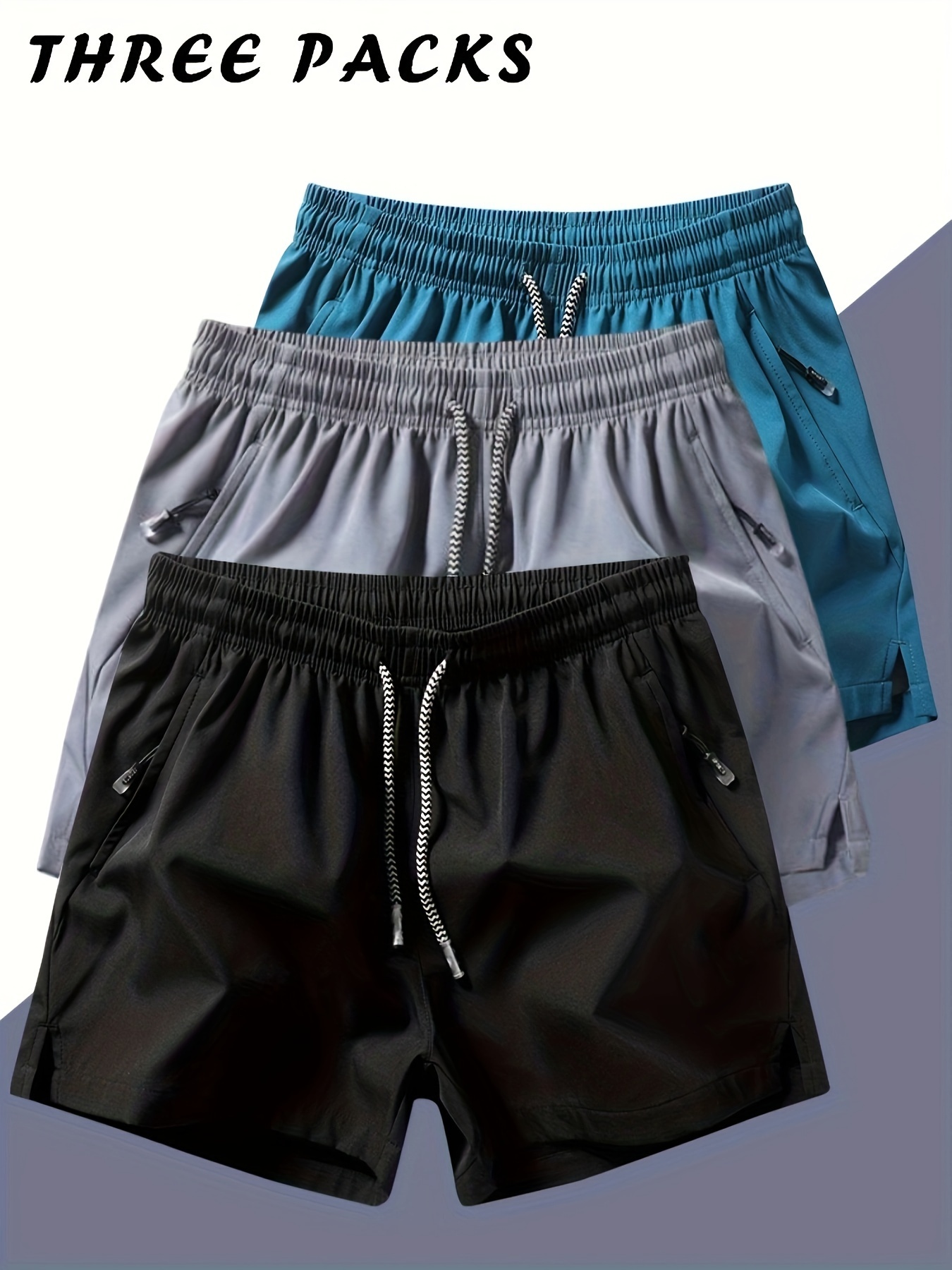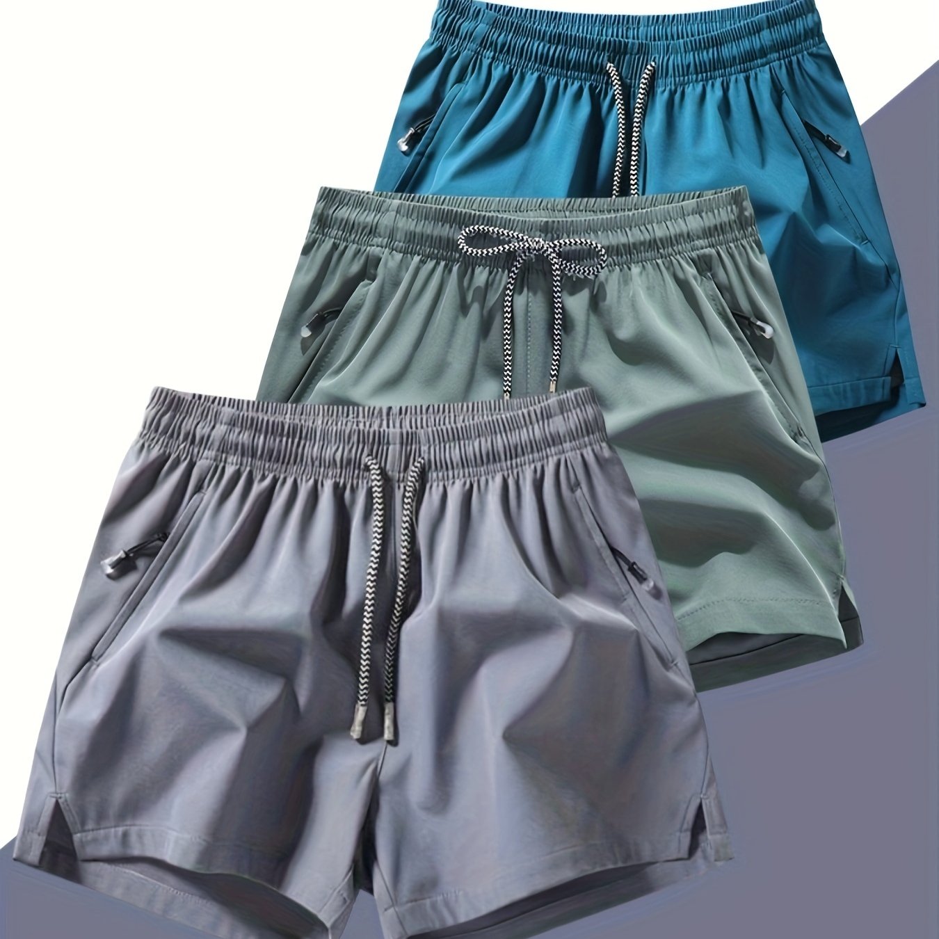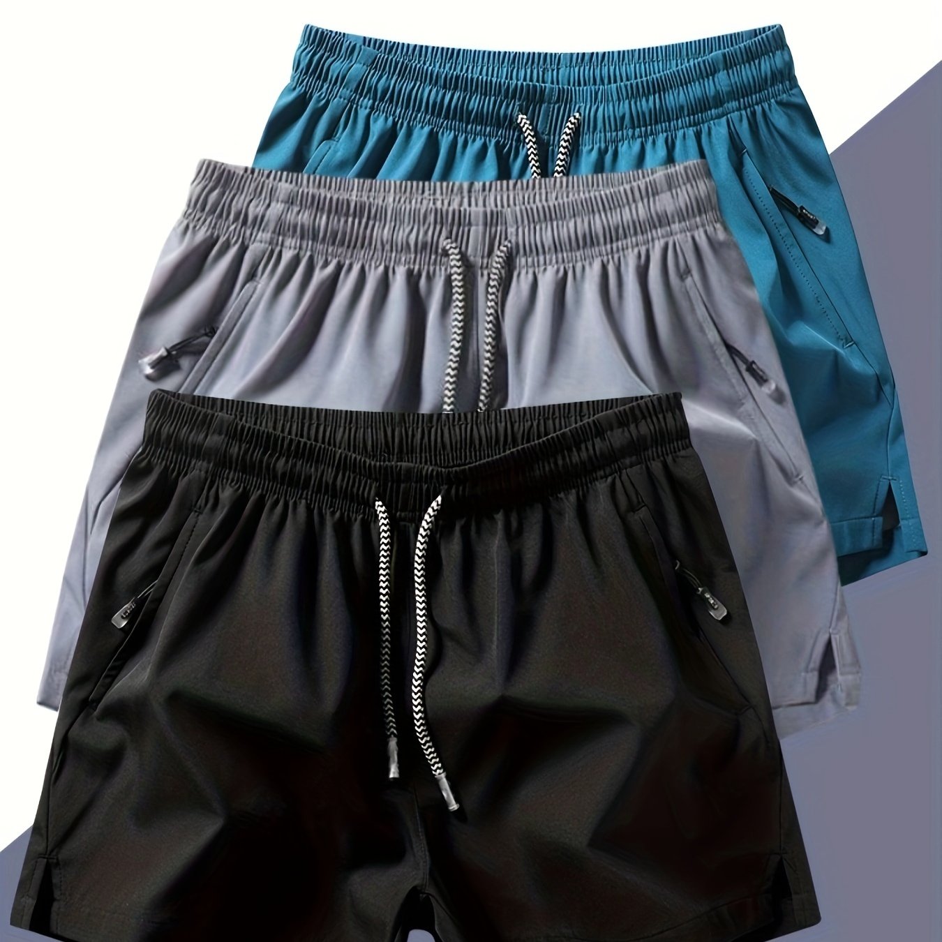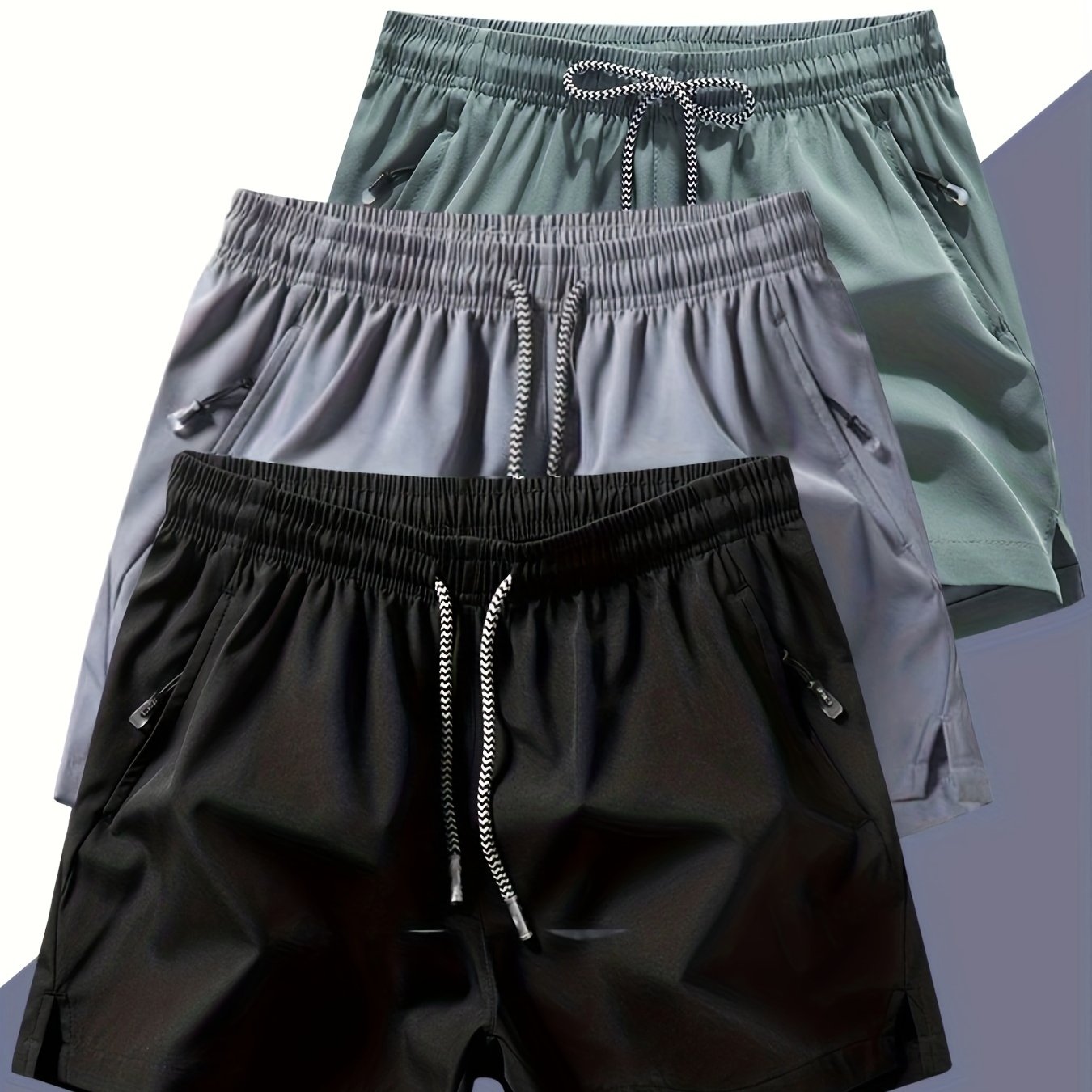 Men’s Three-piece Set Of Solid Color Shorts With Drawstring And Pockets, Casual And Comfy Shorts For Summer Fitness And Outdoors Activities