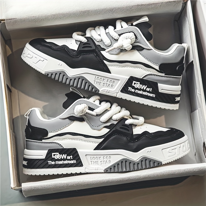 Men’s Trendy Street Style Skate Shoes, Comfy Non Slip Lace Up Casual Platform Sneakers For Men’s Outdoor Activities