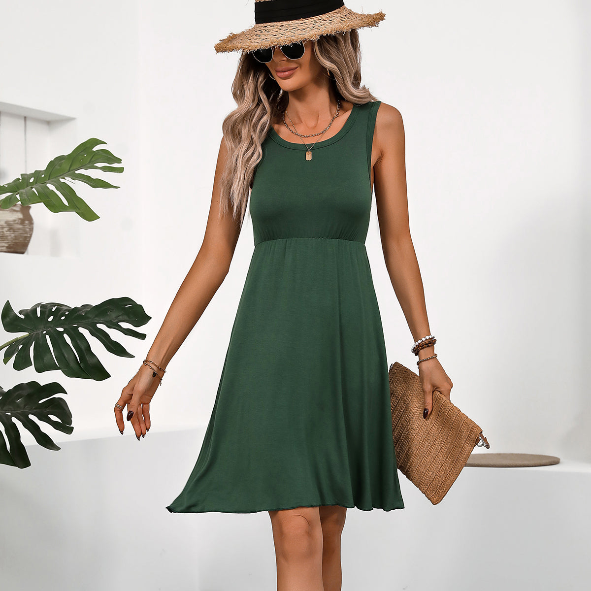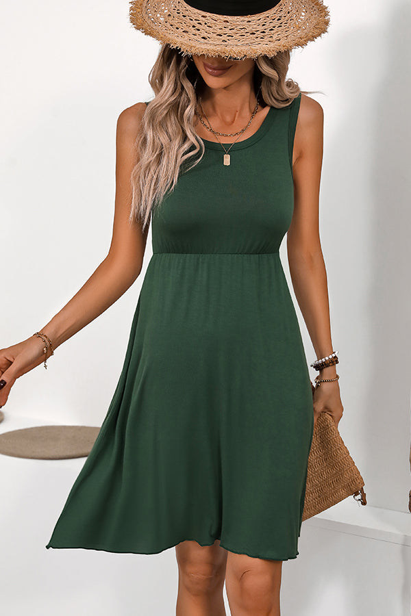 - Solid Color Round Neck Sleeveless Casual Dress