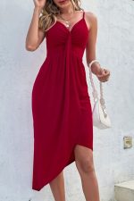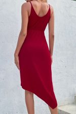 - Solid Color Sleeveless Irregular Hem Bodycon Dress