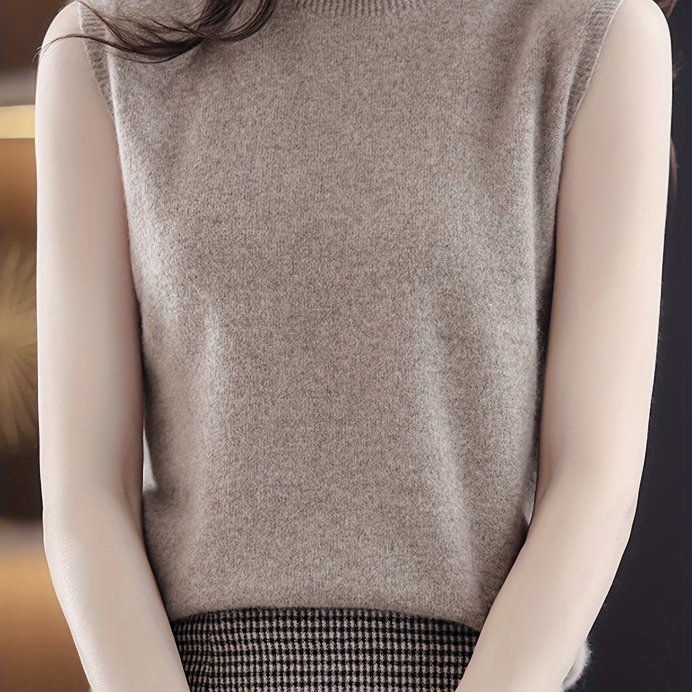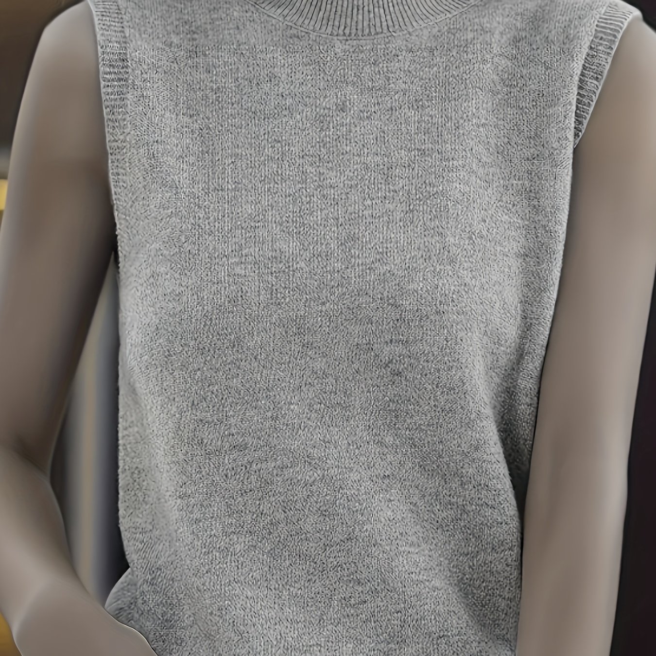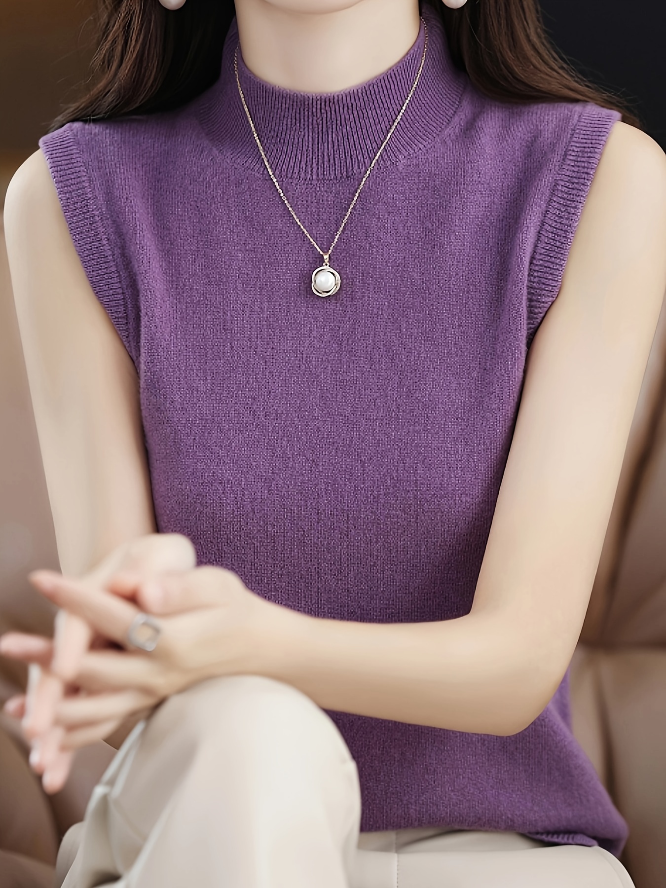 Solid Knit Mock Neck Tank Top, Casual Sleeveless Tank Top, Women’s Clothing