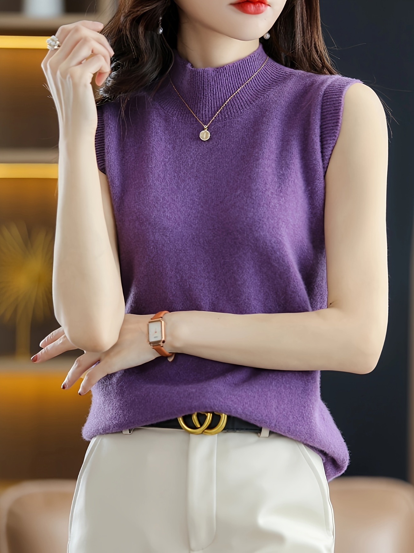 Be the first to review “Solid Knit Mock Neck Tank Top, Casual Sleeveless Tank Top, Women’s Clothing” Cancel reply