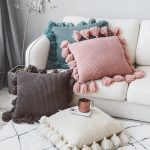 Handmade with cotton and bordered by large fluffy tassels, these Solid Knitted Pillow Covers are available in multiple colors and will add an elegant touch to any living space.