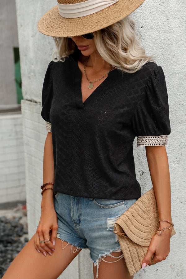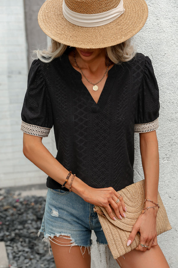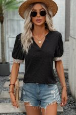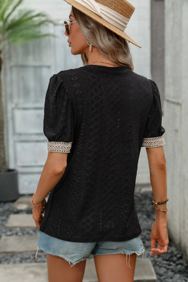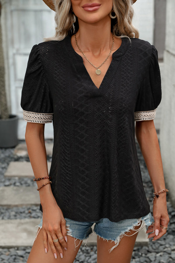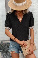 - Solid Color Patchwork Short Sleeve Casual Tops