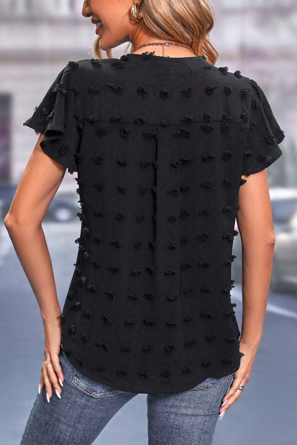 - V Neck Ruffle Sleeve Black Casual Top